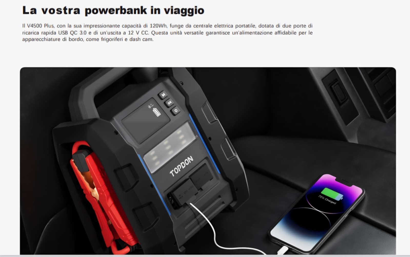 🚨Avviatore d'Emergenza - TOPDON - V4500 PLUS , 12V