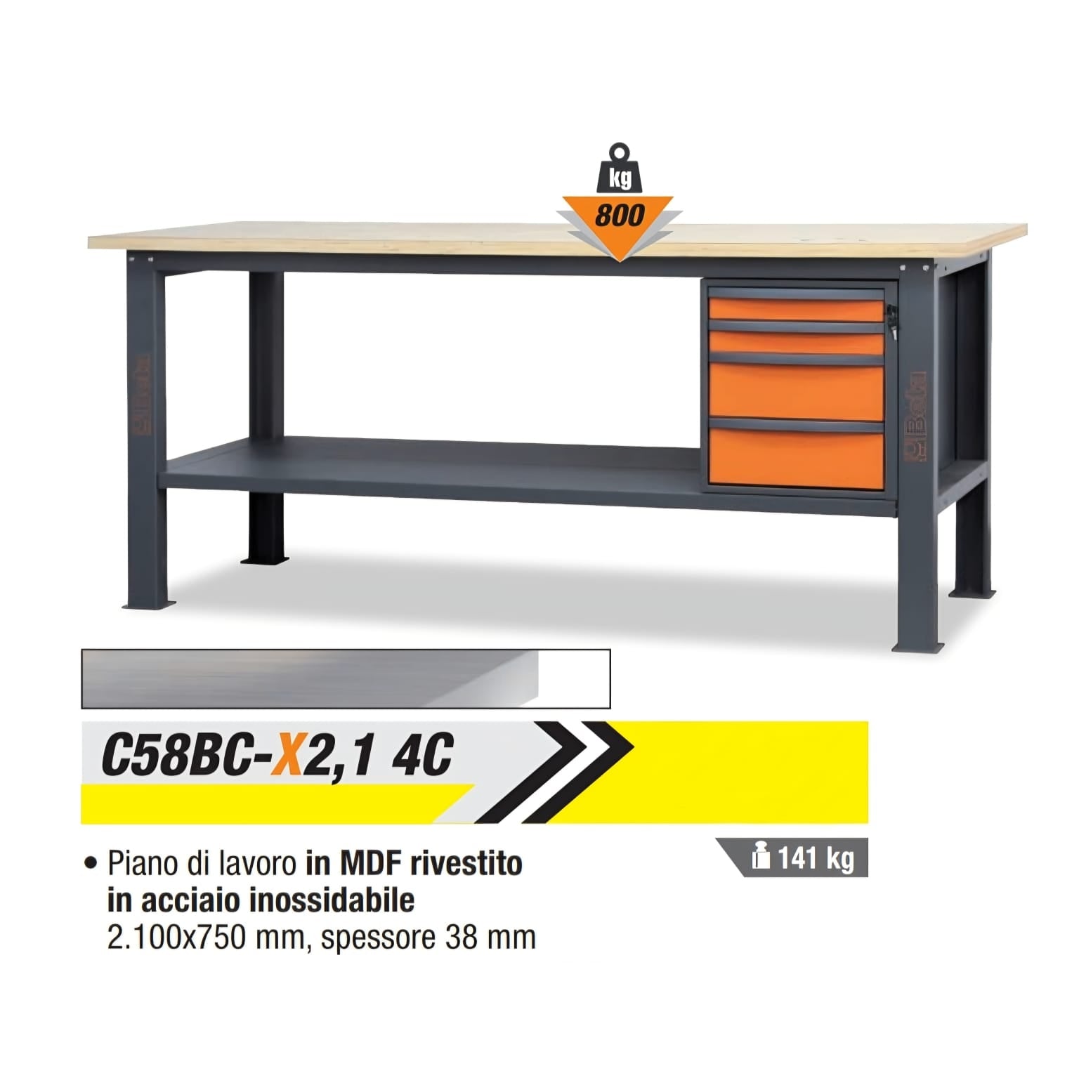 🚨Banco da lavoro - BETA - da 2,1 m con 4 cassetti, disponibile in 2 colorazioni diverse!